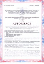 - the Decision on granting Authorization issued by the Czech Office for Standards, Metrology and Testing (ÚNMZ) to conformity assessment activities of specified products in accordance with the Government Provision (GP) No. 9/2002 Coll. (the Directive 2000/14/EC Noise Emission),