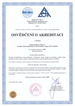 - the Certificate of Accreditation issued by the Czech Accreditation Institute, Public Service Company (ČIA) in accordance with EN ISO/IEC 17020:2013 for Inspection body,